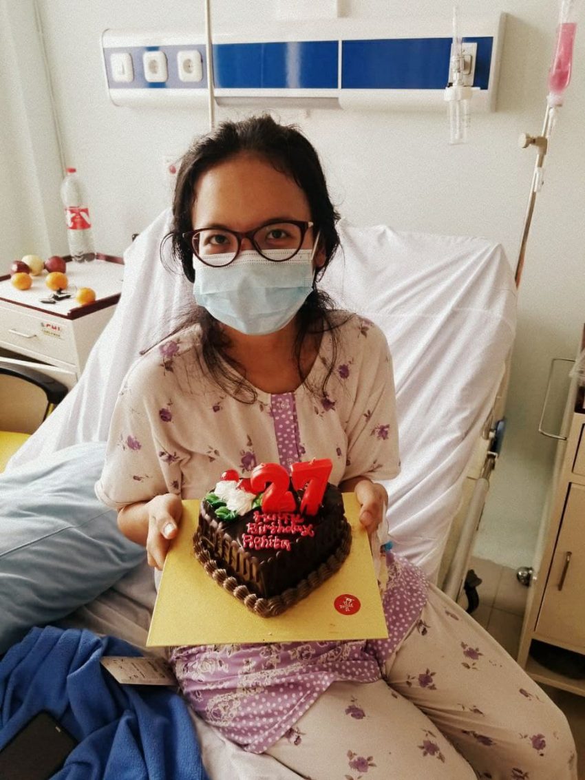 Aku terduduk gelisah sendirian di tempat tidurku. Sudah hampir jam 12 malam. Senyap. Kupandang pandang piama ungu yang melekat dibadanku. Perlahan kuambil Rosario dari laci sebelah kanan tempat tidurku. Di dalam keheningan kudaraskan devosi pada Bunda Maria sambil menahan rasa sakit di badan. Waktu itu menuju empat hari kami menjalani isolasi di rumah sakit. Tak…